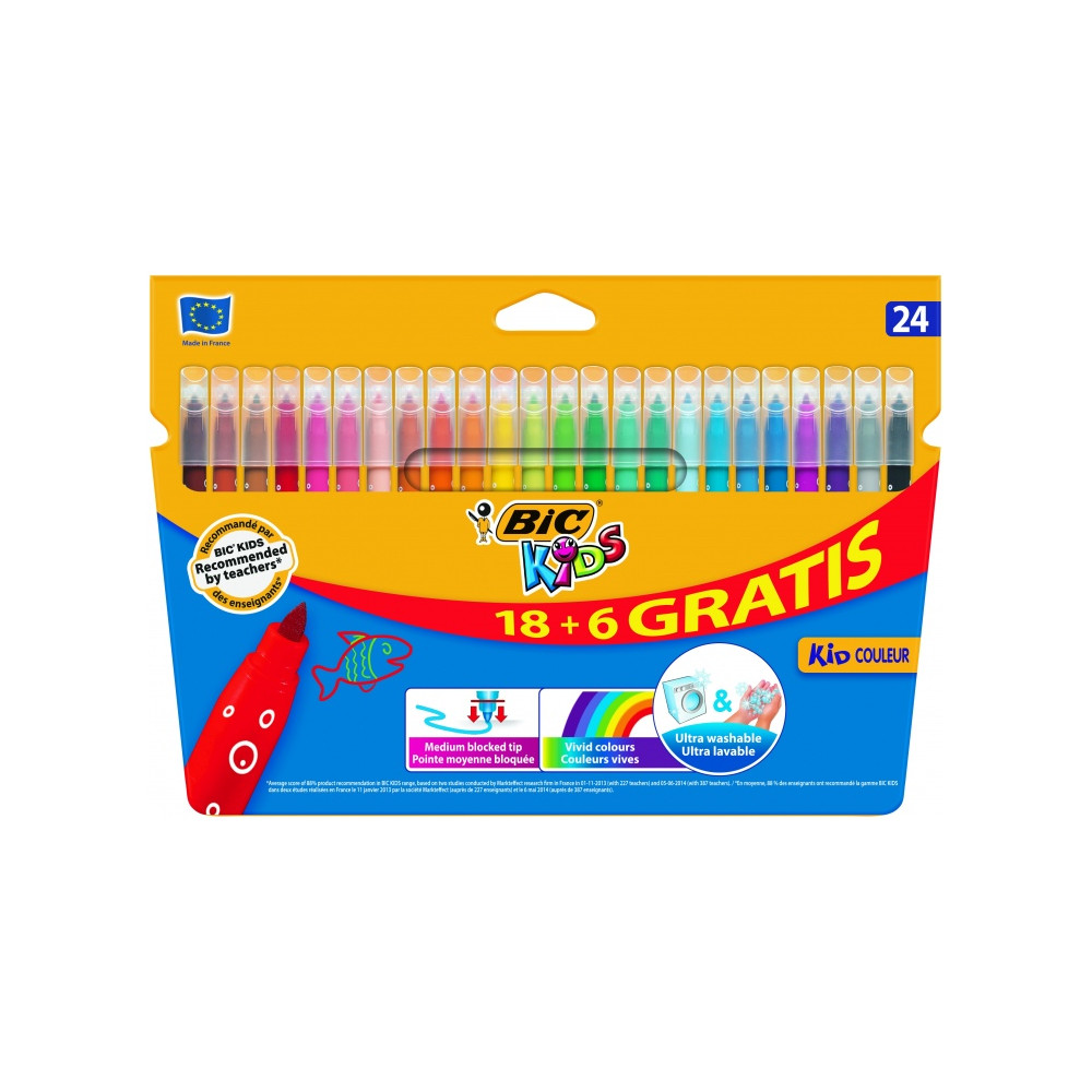 Nuplaunami spalvinimo flomasteriai puikiai tinkantys kasdieniam naudojimui. Tinkamas naudoti vaikams nuo 5m amžiaus. Spalvotas rašalas, pagamintas vandens pagrindu - nuplaunamas nuo rankų ir daugumos medžiagų. Spaudimui atsparus piešimo antgalis. Ypač ryškios, žaismingos spalvos. Patikrintas ir patvirtintas atitikti Europos žaislų standartus (EN71). Orui pralaidus kamštelis – saugus naudoti vaikams. Brėžio storis – 0,8 mm.