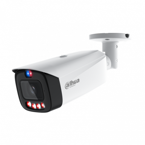 IP kamera AI FULL-COLOR cilindrinė 8MP su integruotu dvigubu mikrofonu, aktyvaus atgrasymo, su raudonu/mėlynu blyksinčiu šviesos ir garso aliarmu. 1/1.8 colio FULL-COLOR CMOS sensorius. Hibridinis IR+LED (IR+warm light) pašvietimas iki 50m. 8MP(3840 ×2160) @(1~25)fps. Fiksuotas objektyvas: 3.6mm F1.0 apžvalgos kampas 93°. H.265+/H.265/H.264+/H.264. BLC, HLC, WDR 120dB, ROI, IVS, AI SSA, SMD 4.0, PoE, koridoriaus režimas. 3D-NR: triukšmų mažinimo technologija. SD atminties prievadas Max 512GB. IP67 atspari drėgmei tinka lauko ir vidaus sąlygoms. 3 ašių reguliavimas. Palaiko ONVIF (Profile S/Profile G/Profile T); CGI; P2P standartą. Modelis: IPC-HFW3849T1-AS-PV-PRO 3.6mm.