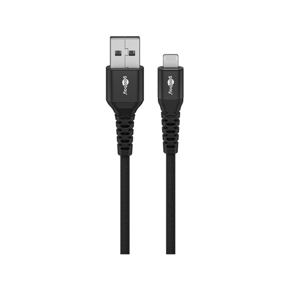 Goobay Lightning USB-A Supersoft Textile Cable with Metal Plugs, 2 m, black